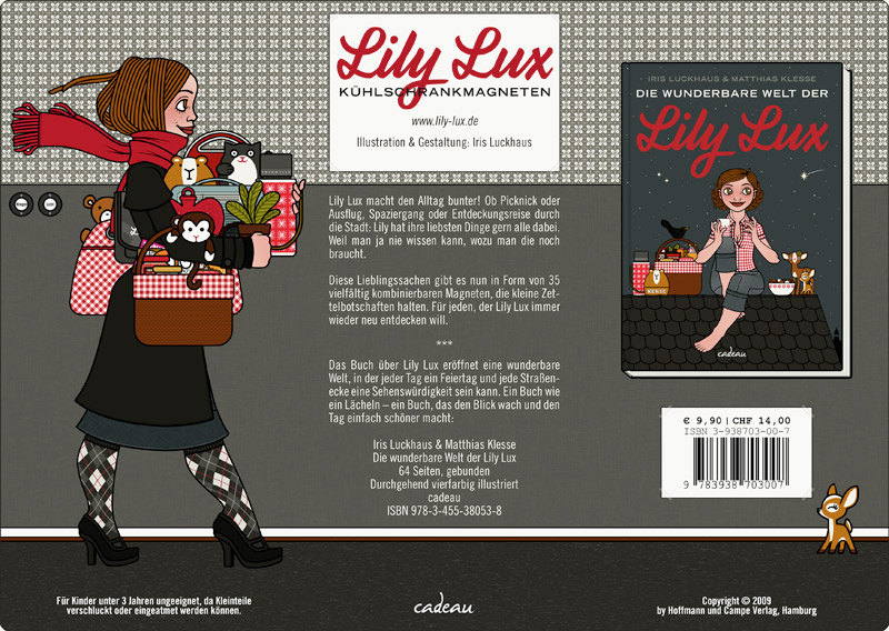 "Lily Lux macht den Alltag bunter! Ob Picknick oder Ausflug, Spaziergang oder Entdeckungsreise durch die Stadt: Lily hat ihre liebsten Dinge gern alle dabei. Weil man ja nie wissen kann, wozu man die noch braucht. Diese Lieblingssachen gibt es nun in Form von 35 vielfältig kombinierbaren Magneten, die kleine Zettelbotschaften halten. Für jeden, der Lily Lux immer wieder neu entdecken will."