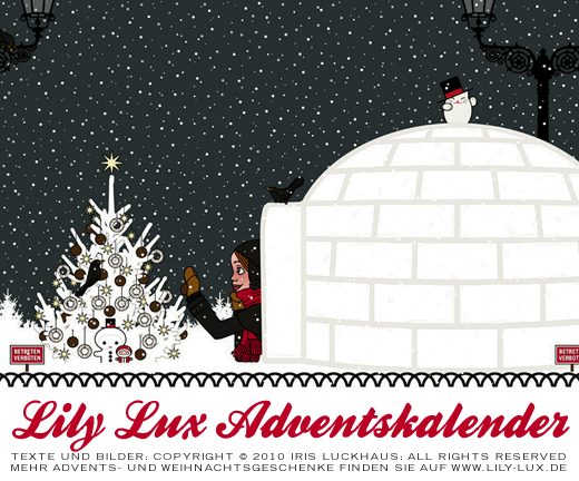 Auf der Website von Lily Lux haben wir pünktlich zum 1. Dezember einen niegelnagelneuen Adventskalender erstellt, in dem Sie täglich ein neues kleines Motiv aus ihrer wunderbaren Welt und einen feinen Feiertag finden können. Wir wünschen Ihnen eine herrliche Vorweihnachtszeit!